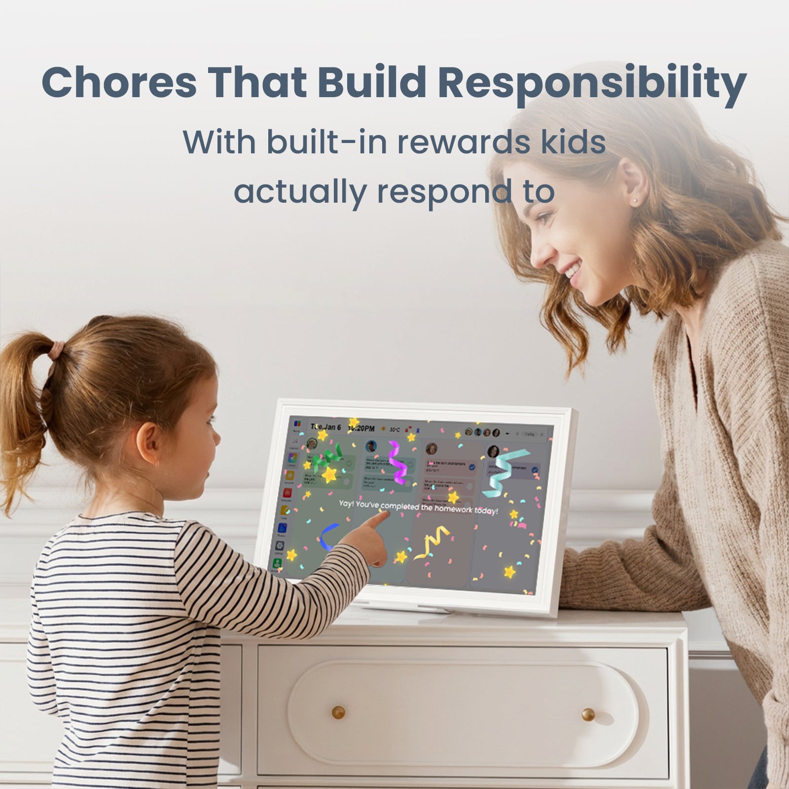 Use the companion mobile app to update schedules on the go. Manage daily life in one place with visual chore charts and rewards, shared to-do and shopping lists, and a customizable meal planner — helping families stay organized, aligned, and on track.